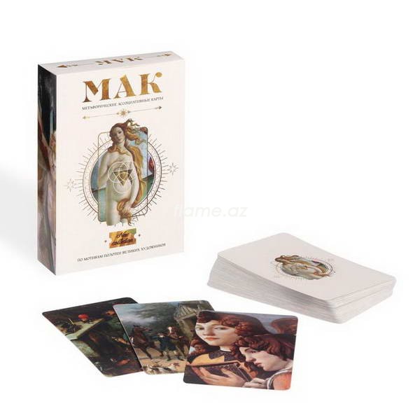 Метафорические ассоциативные карты (МАК) — это набор иллюстраций, на которых вас ждут полотна великих художников с разнообразными сюжетами. Карты называются так, потому что каждый рисунок — это ассоциация или метафора мыслей, чувств, воспоминаний или переживаний, которые помогут раскрыть тайны вашего подсознания.