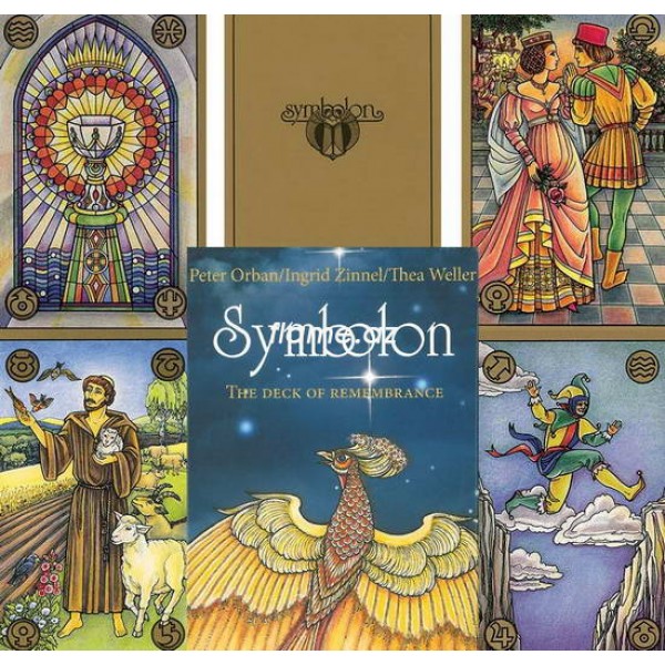 "Симболон" не является колодой Таро в традиционном смысле этого слова, тут нет мастей, а также деления на Младшие и Старшие арканы, но опытному тарологу не составит труда научиться читать эти карты, их образы яркие и дают хороший стимул для интуиции (к тому же некоторые из этих образов в точности повторяют традиционные арканы). А если вы к тому же знакомы с астрологией, то благодаря символам, сопровождающим каждую карту, сможете понять язык изображений еще глубже. В колоде "Симболон" можно выделить две группы карт. Первая −12 карт, соответствующих знакам зодиака. Это «чистые» архетипические образы. В верхнем углу каждой такой карты расположен соответствующий зодиакальный символ (планета управляющая этим знаком).