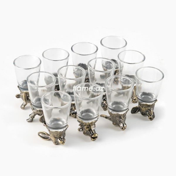 Двенадцать не граненых сувенирных рюмок, основание которых выполнено под 12 зодиакальных животных.