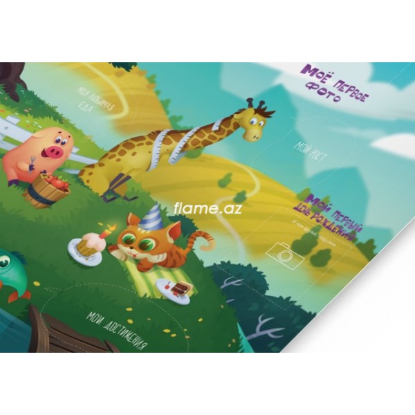 Зафиксируйте первые шаги малыша, день, когда он сказал мама, или у него вырос первый зубик, что заставляет его смеяться и какой был рост малыша при рождении, а какой в 6 месяцев. Когда плакат будет заполнен, положите его обратно в тубус и подарите своему ребенку на 18-летие!